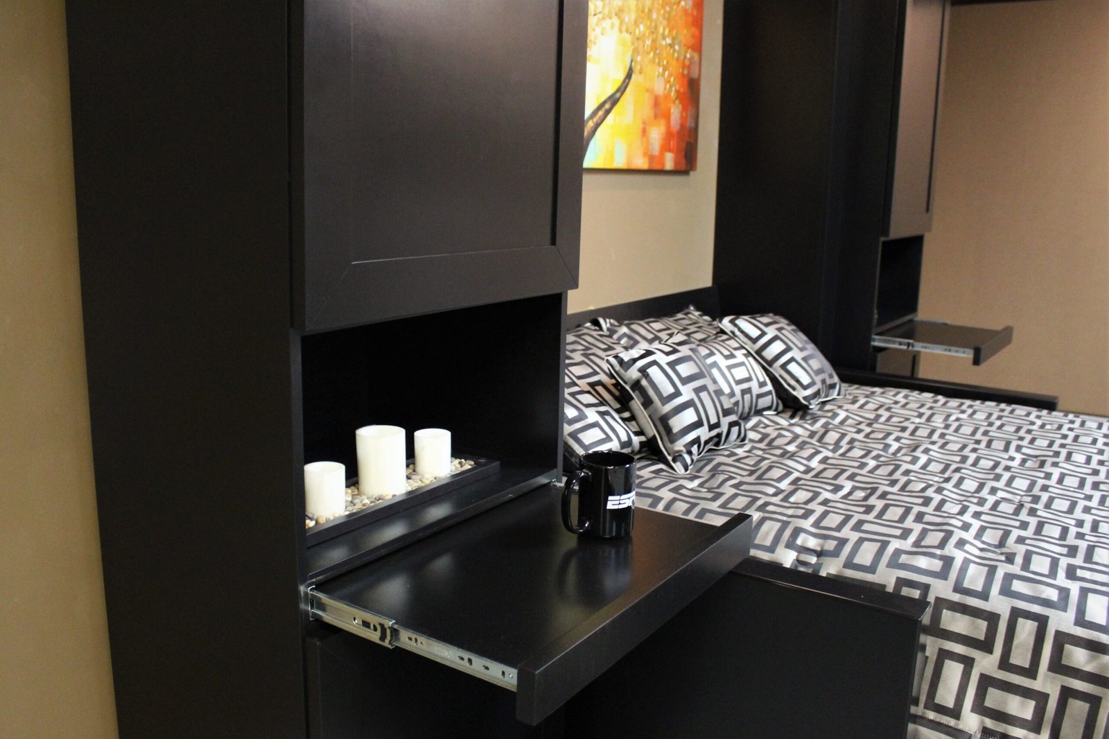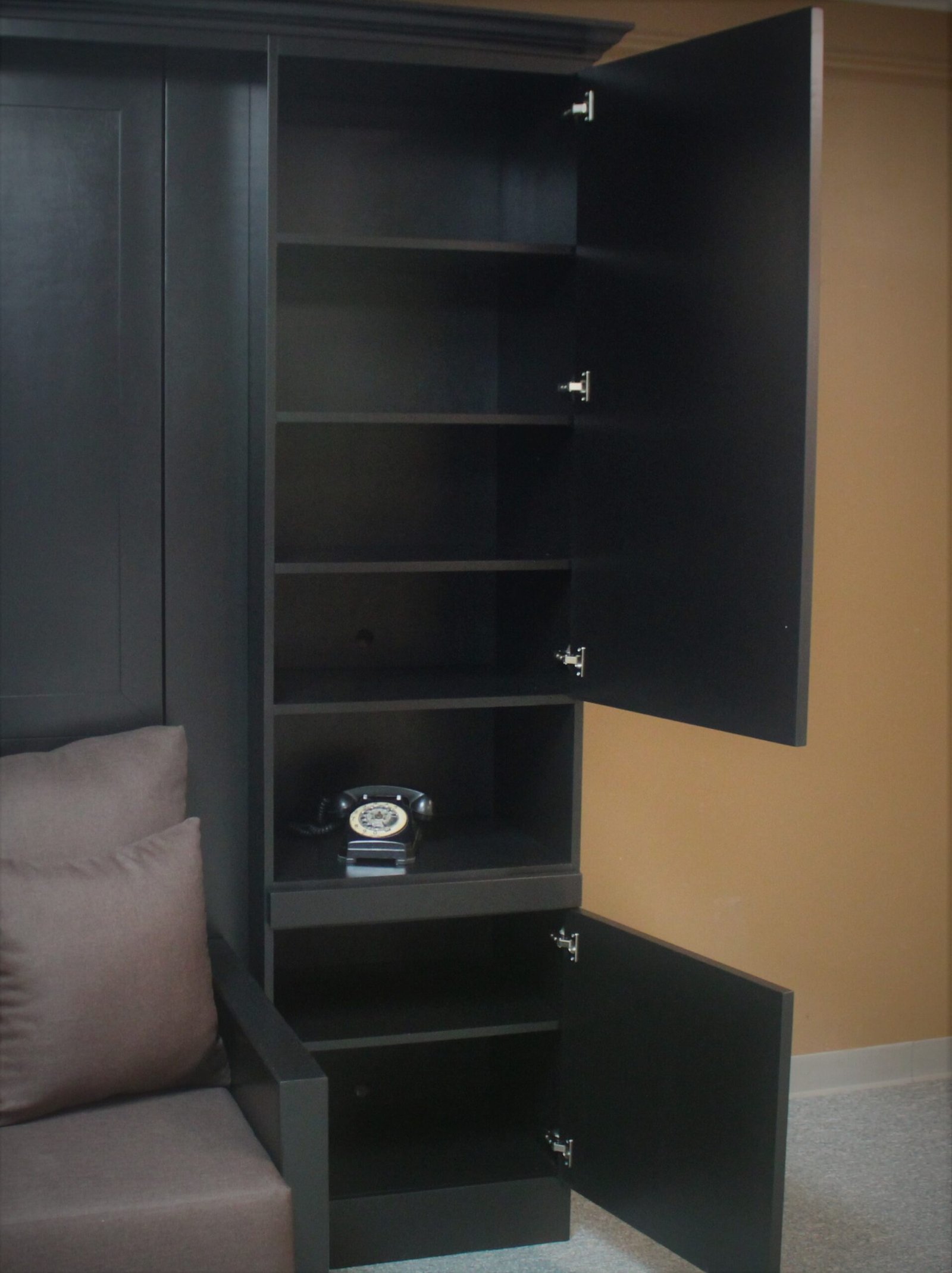 Black Marriott Murphy bed with sofa