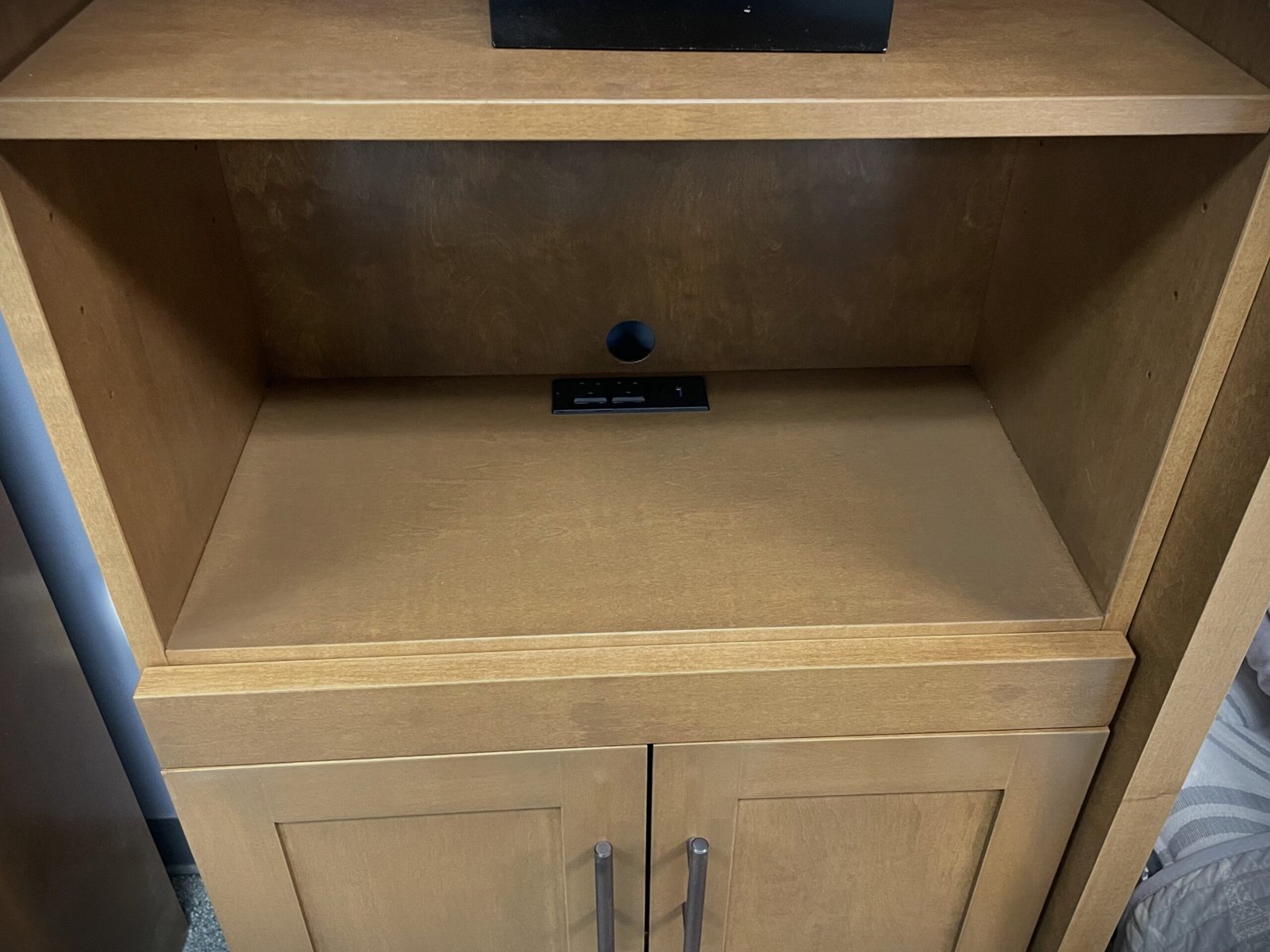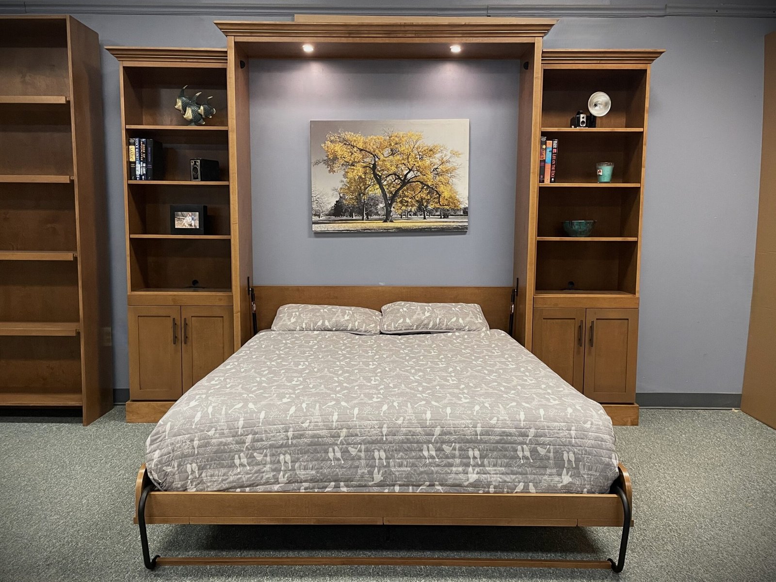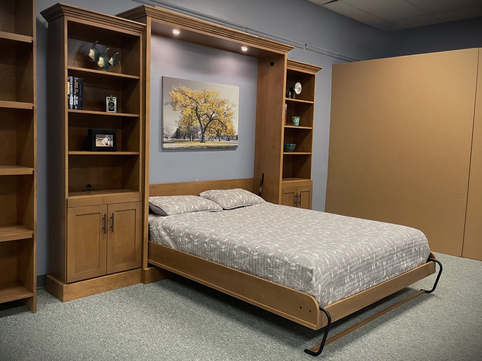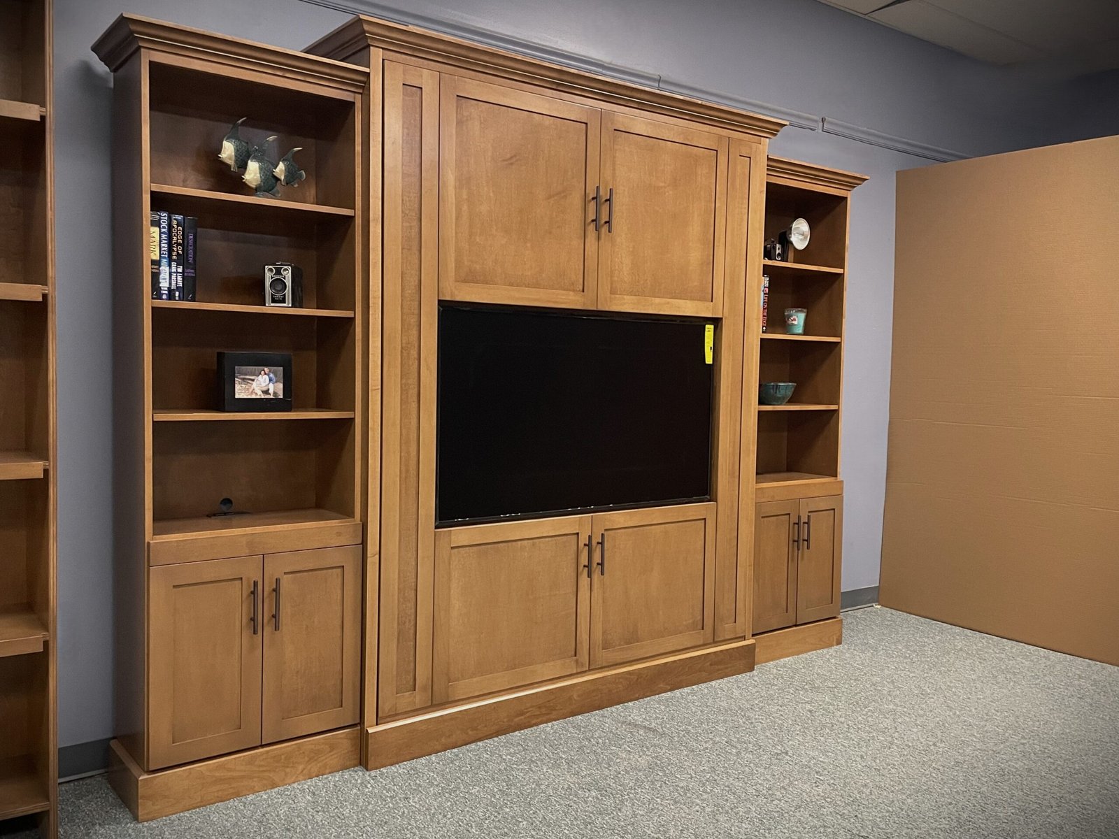 The unit is finished with our Standard style crown molding and Mission style base molding, giving it a balanced mix of clean lines and classic craftsmanship. This entertainment center Murphy bed is a perfect example of how smart design, quality materials, and thoughtful details can transform a room into a flexible, space-saving solution with lasting style.