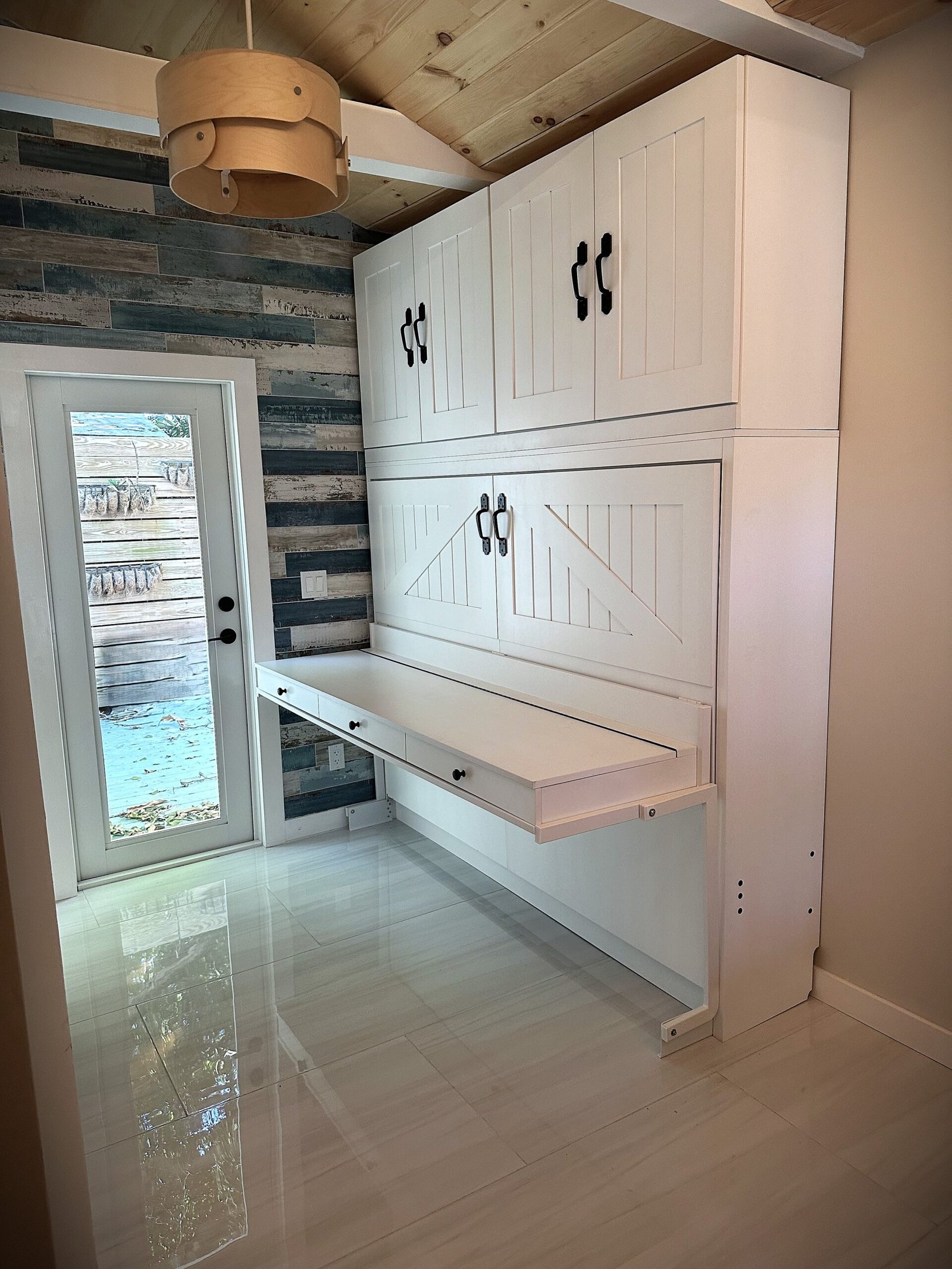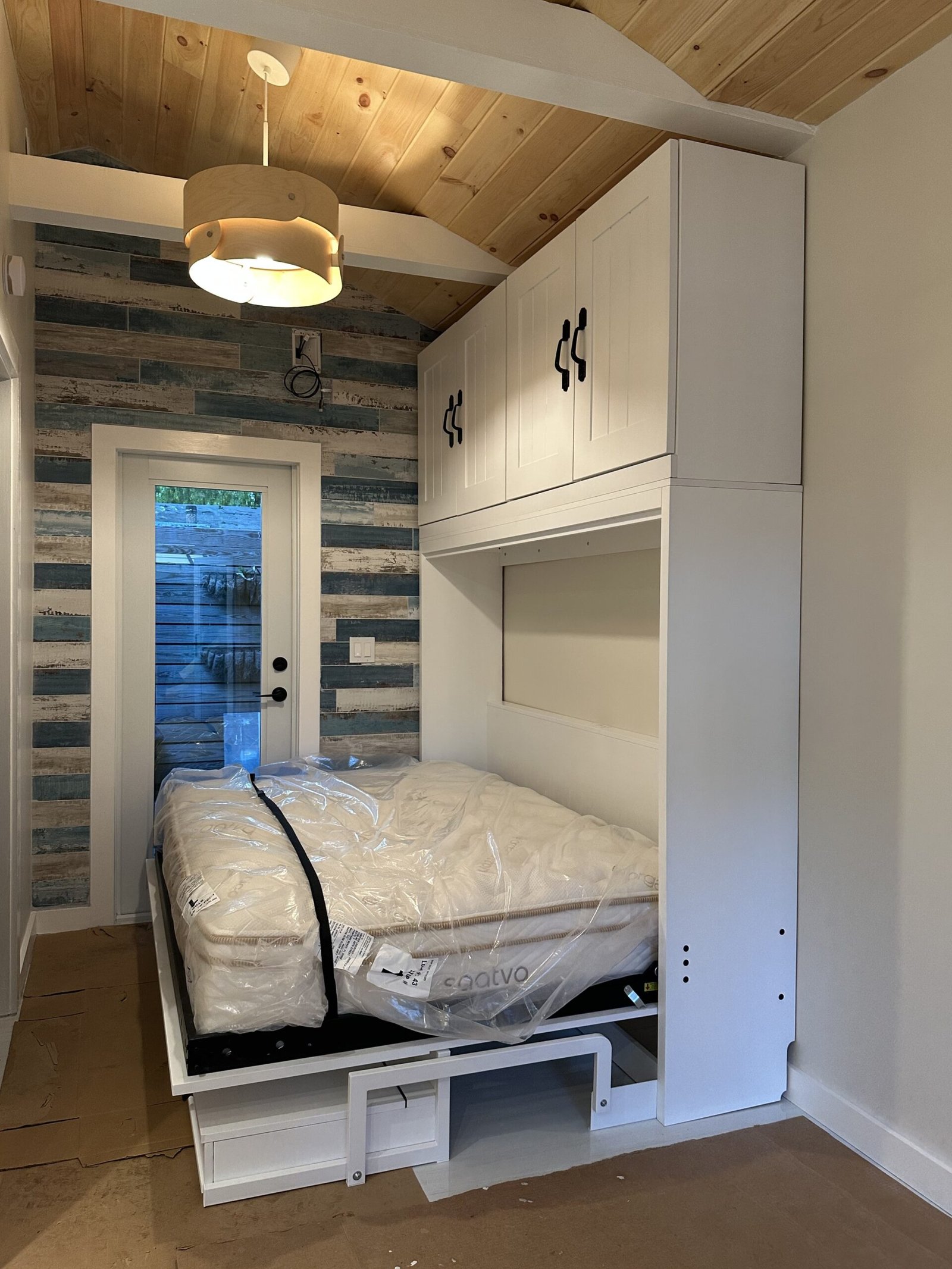 Our Barn Door Murphy Bed features a distinctive two-door face designed to resemble classic barn doors. Detailed grooves and bold 4″ trim create a strong, rustic look while maintaining a clean, built-in appearance that works beautifully in both traditional and modern spaces.