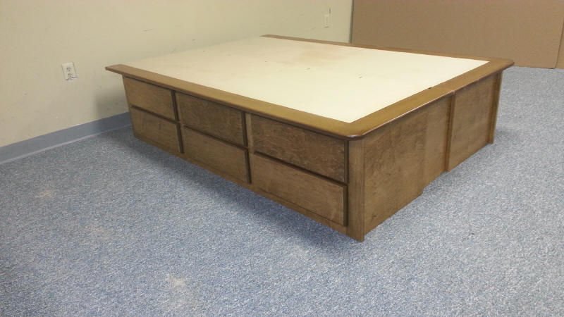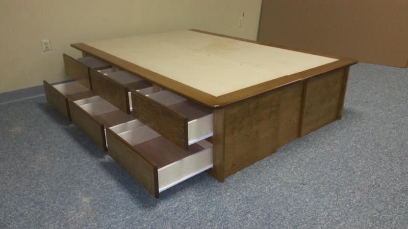 We configure these for any size. We make each 1/2 unit the same (72″l x 21 1/4″d x 18″h) What determines the different sizes is the center divider. On the queen and king we can utilize that center space with a door or drawer