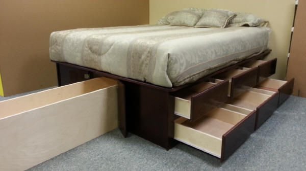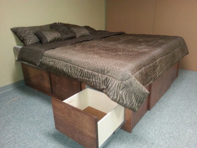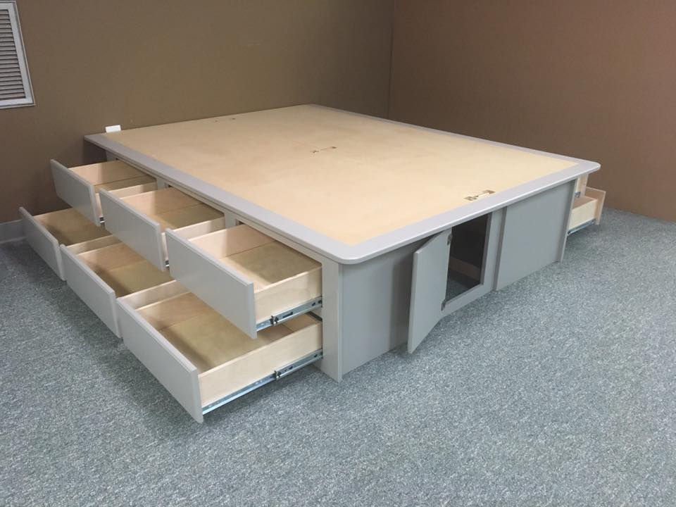 This space saving drawers are the perfect storage solution. The standards height is 18″ tall, but can do custom sizes. It comes in two units, a left and a right. We can change configurations for either side (example 6 drawer unit on one side with 5 drawer on the other).