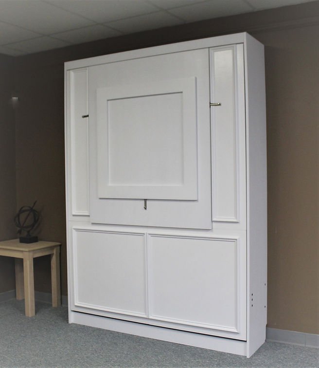 This bed is built with a desk at bar height. The face style is similar to our Hudson Bay with picture frame molding added to face. This is perfect for a home office.