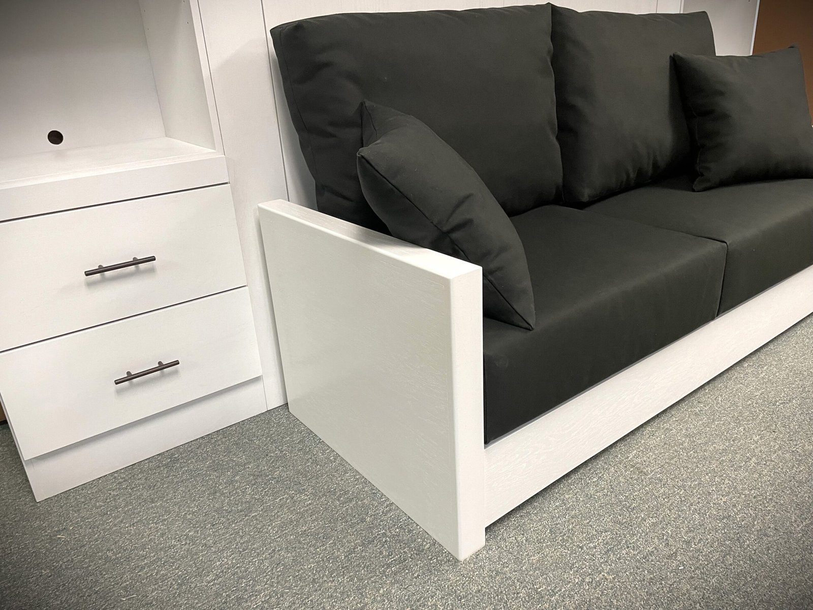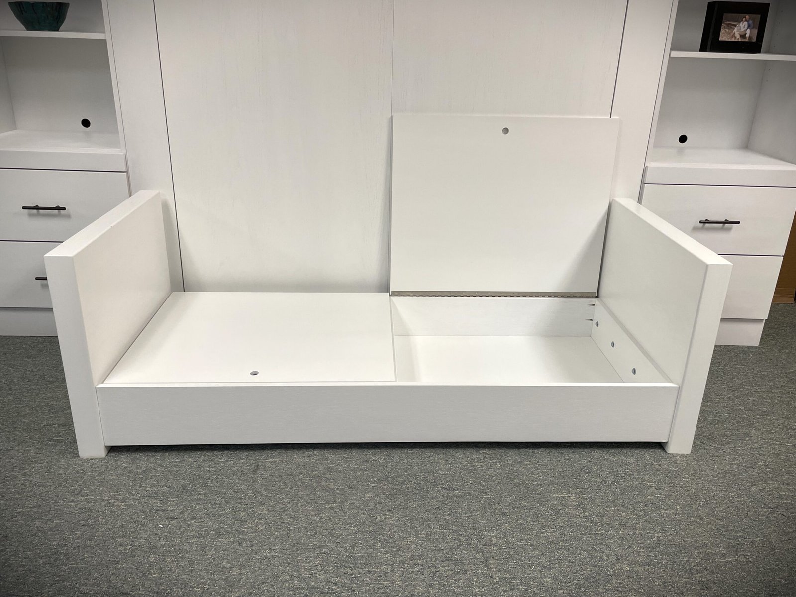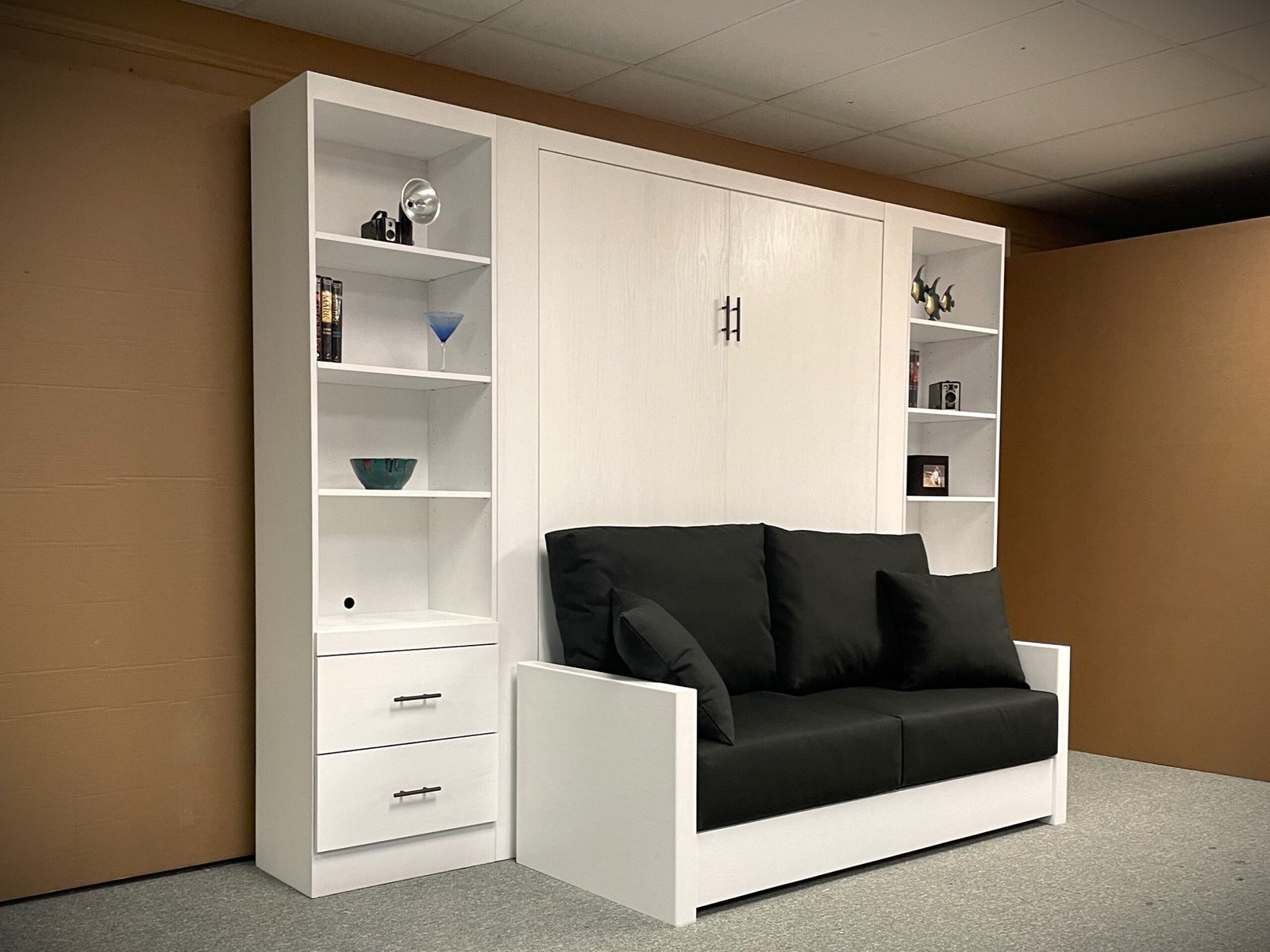 White Manhattan Murphy bed with sofa