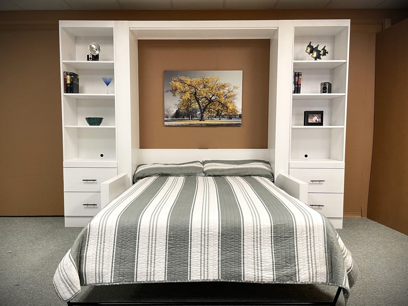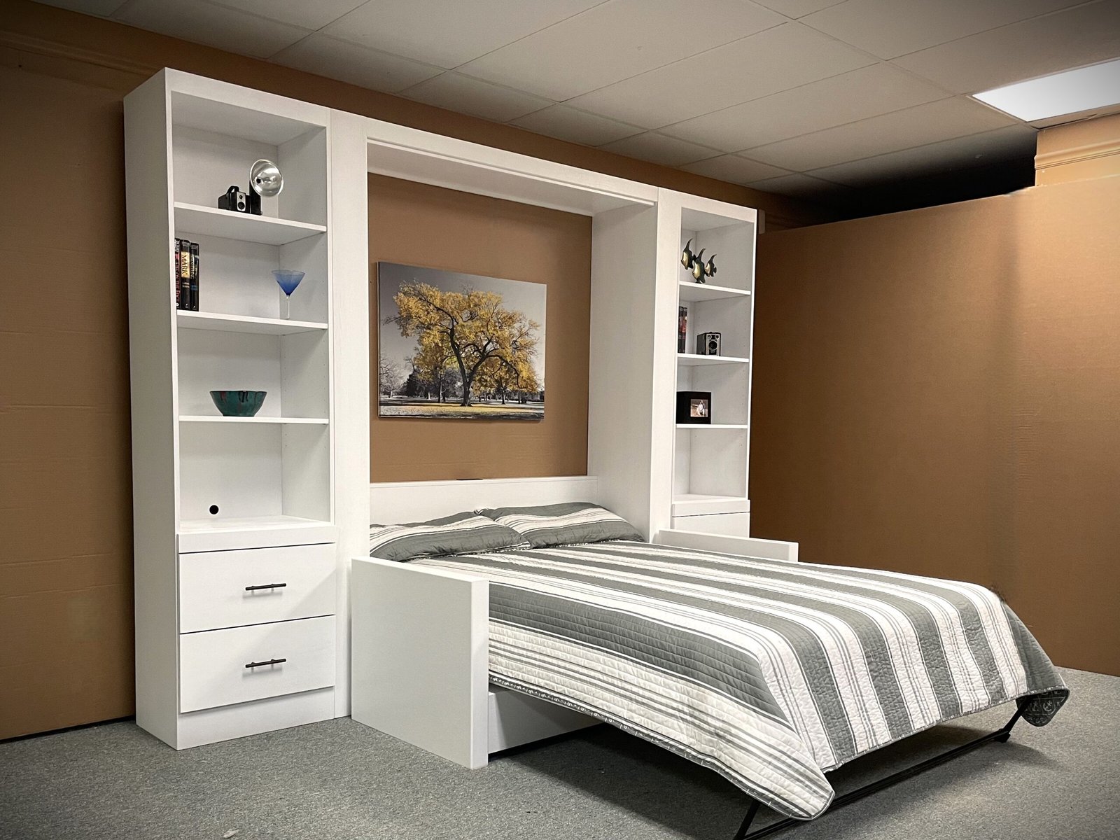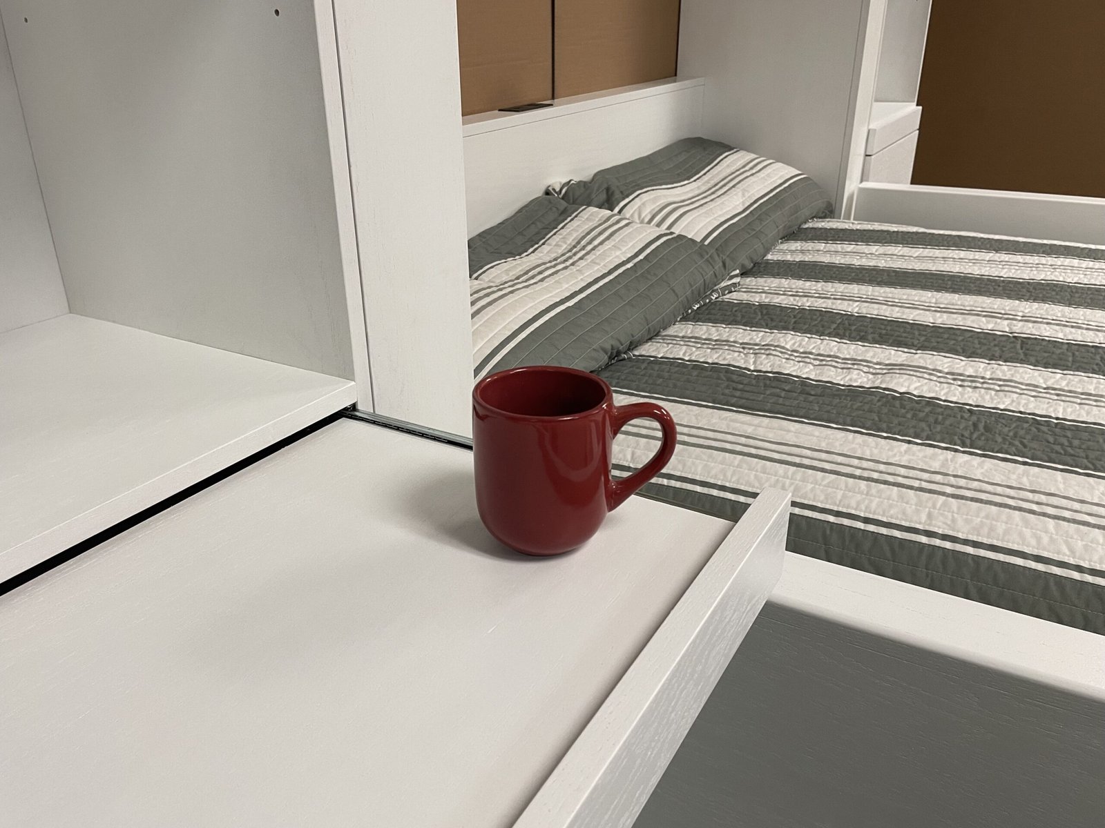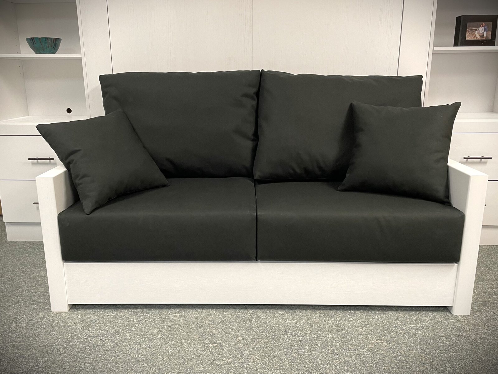White Manhattan Murphy bed with sofa