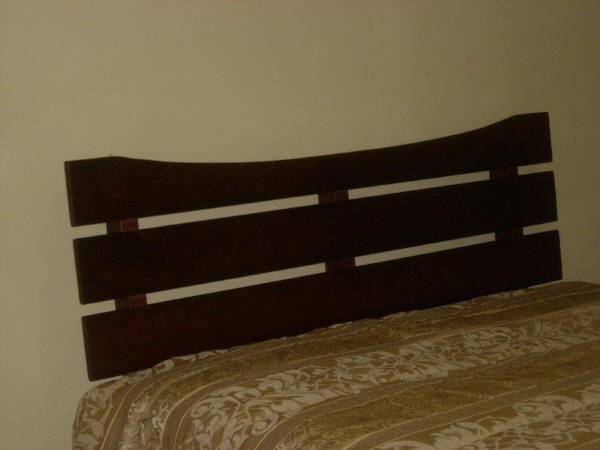 This headboard is made with slats with the top one arched.  Shown here with our 12 Drawer Captain’s drawer, but can be purchased without them.