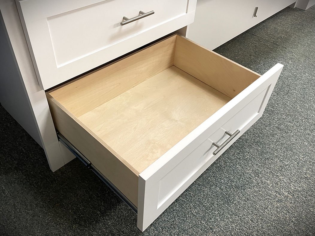 The Templeton is a shaker style face that is divided into four doors. It gives the appearance of four doors above the desk.