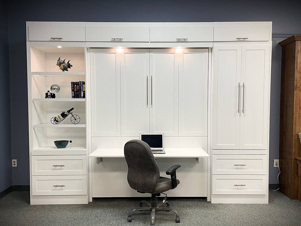 Examples are shown and priced with specific bookcases. Bookcases can be interchanged and customized to fit your need, so don’t let that limit your options.