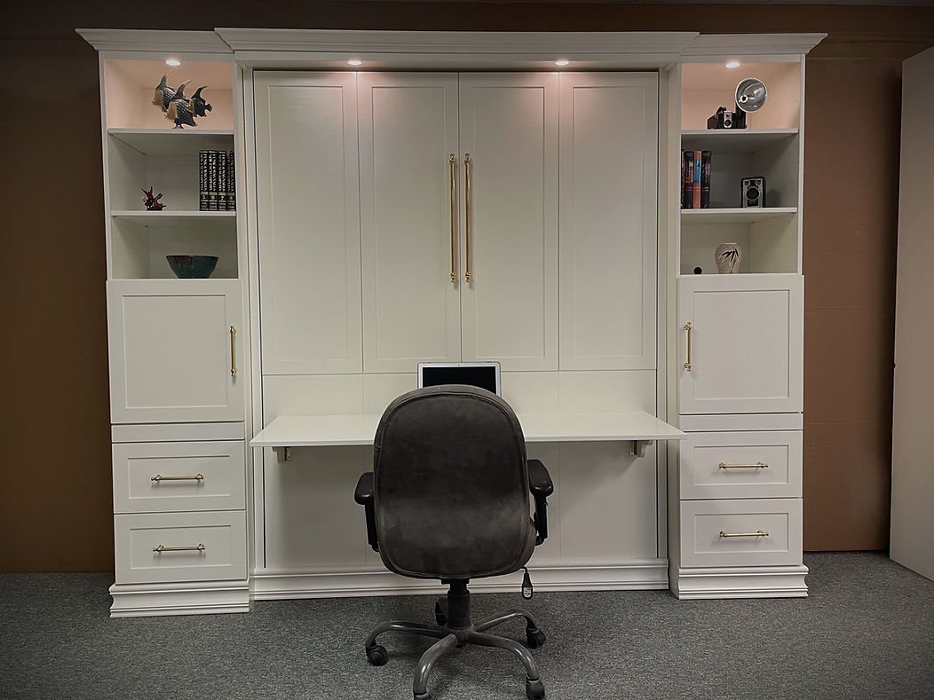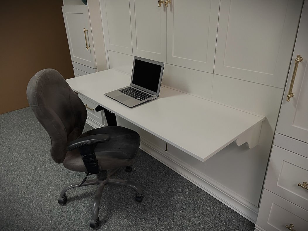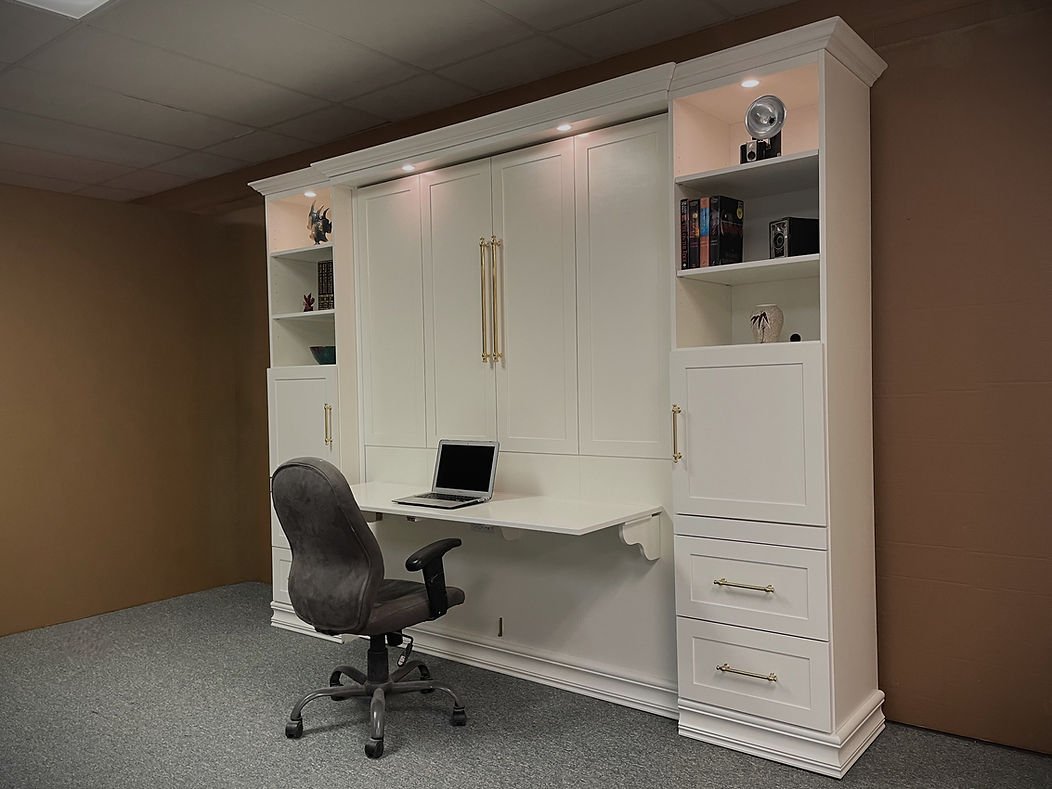 The Templeton is a shaker style face that is divided into four doors. It gives the appearance of four doors above the desk.