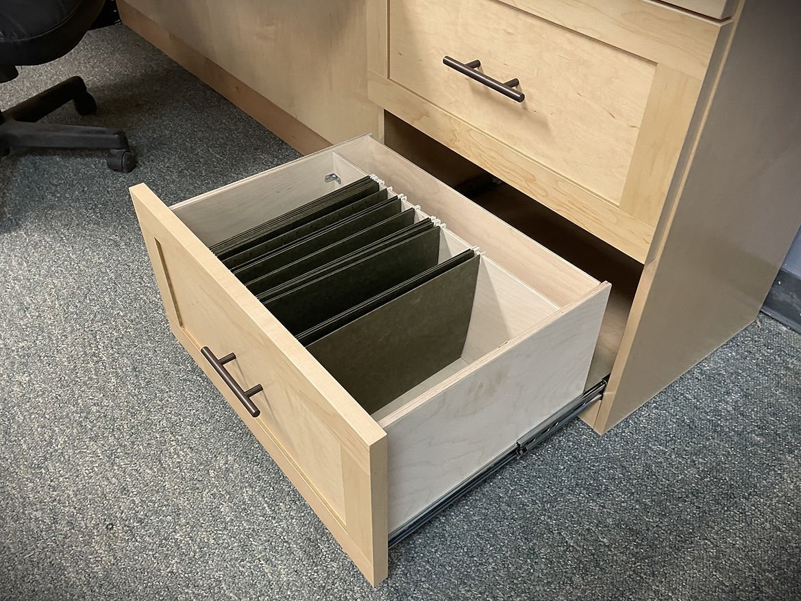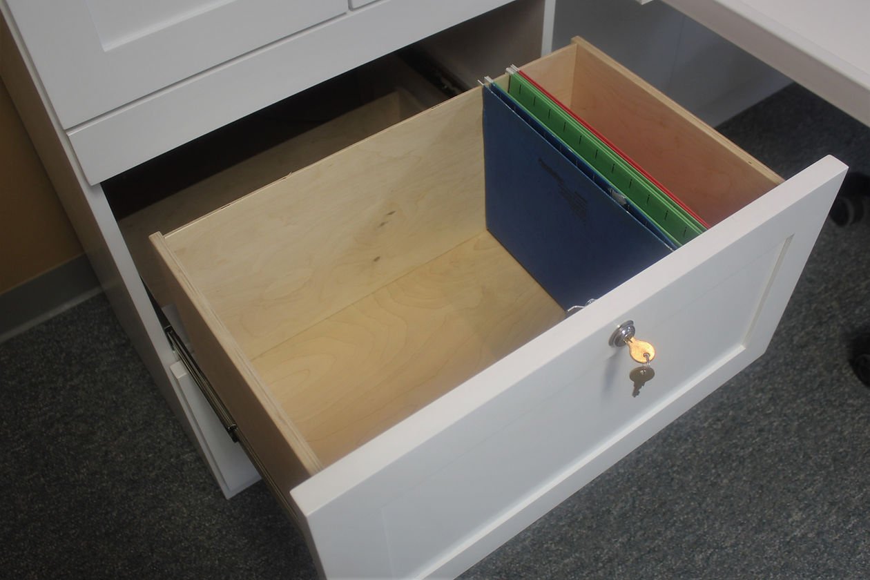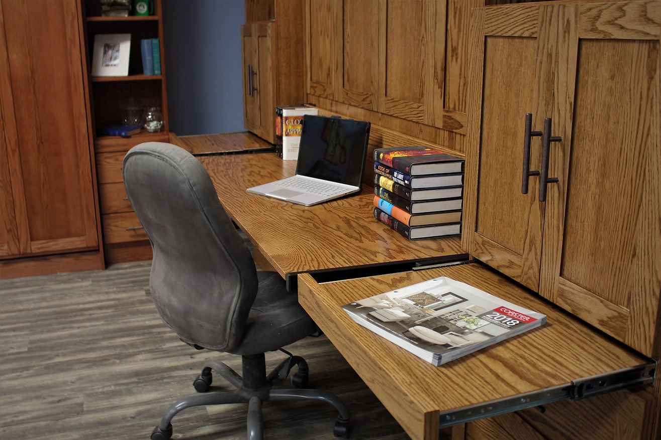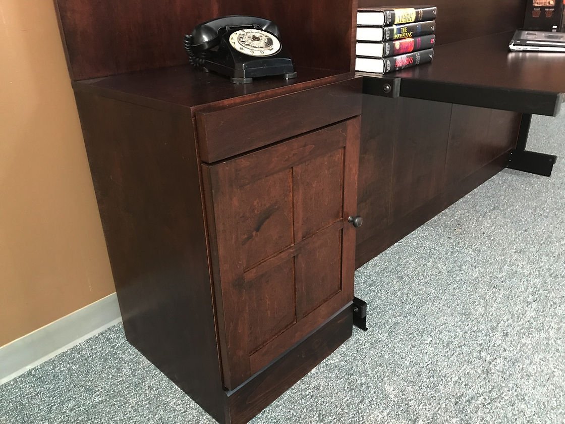 The Templeton is a shaker style face that is divided into four doors. It gives the appearance of four doors above the desk.