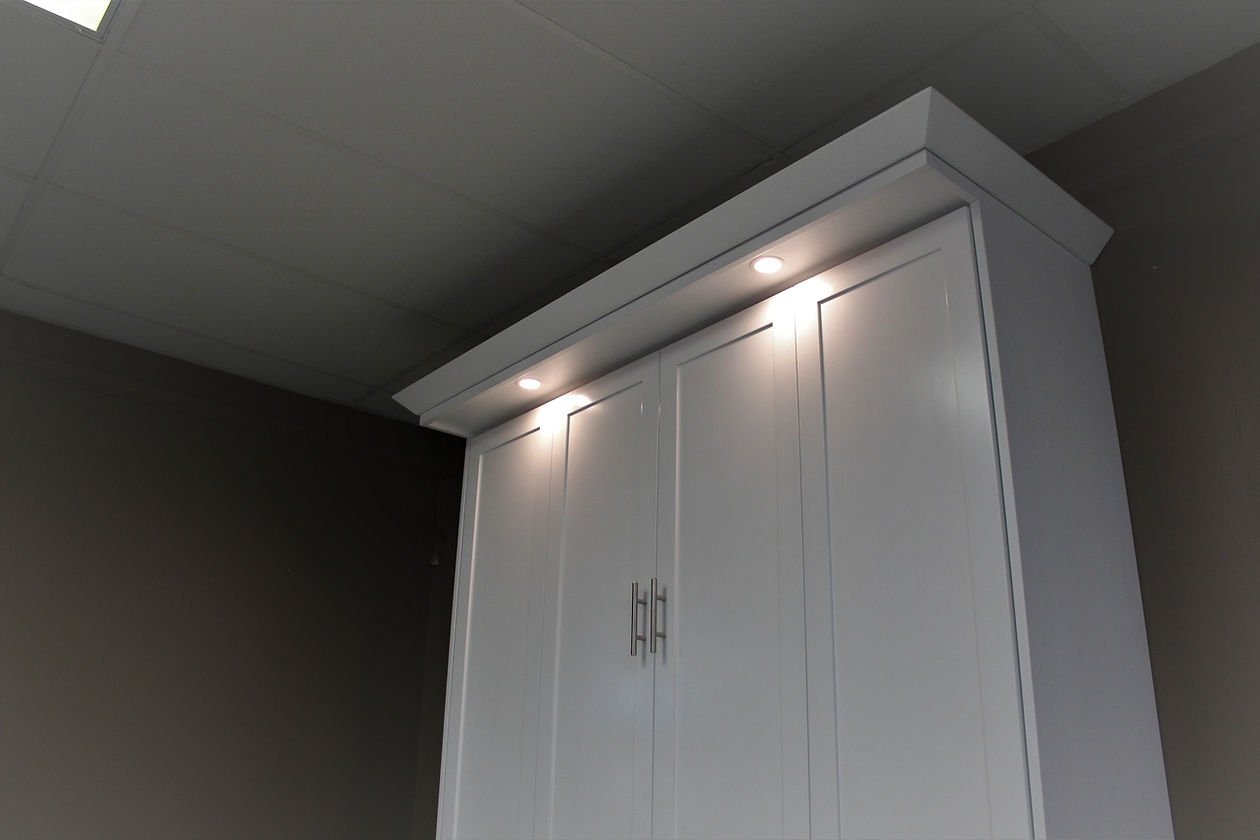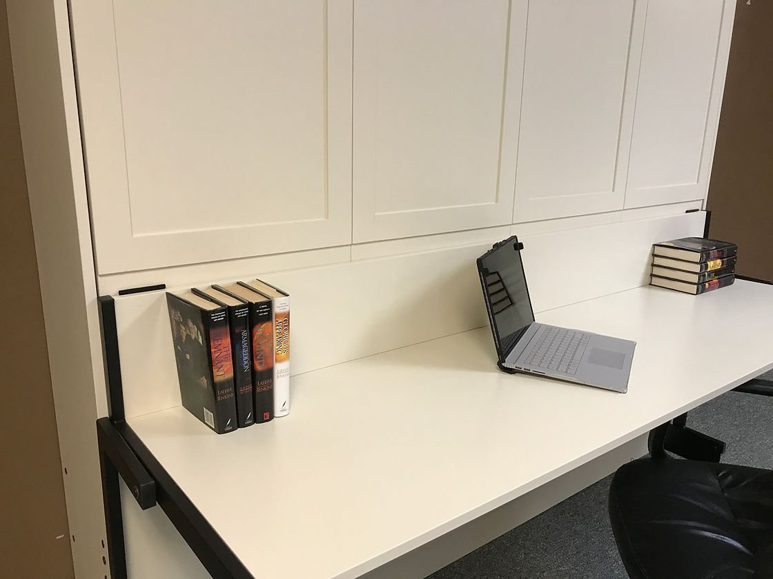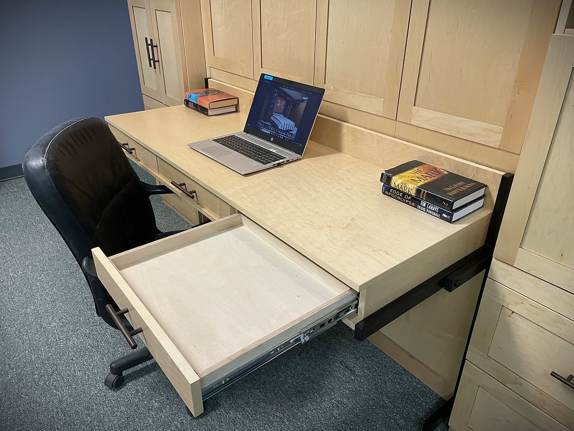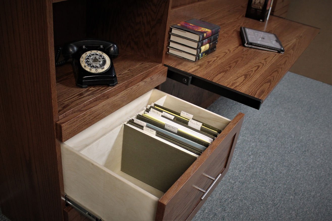 The Templeton is a shaker style face that is divided into four doors. It gives the appearance of four doors above the desk.