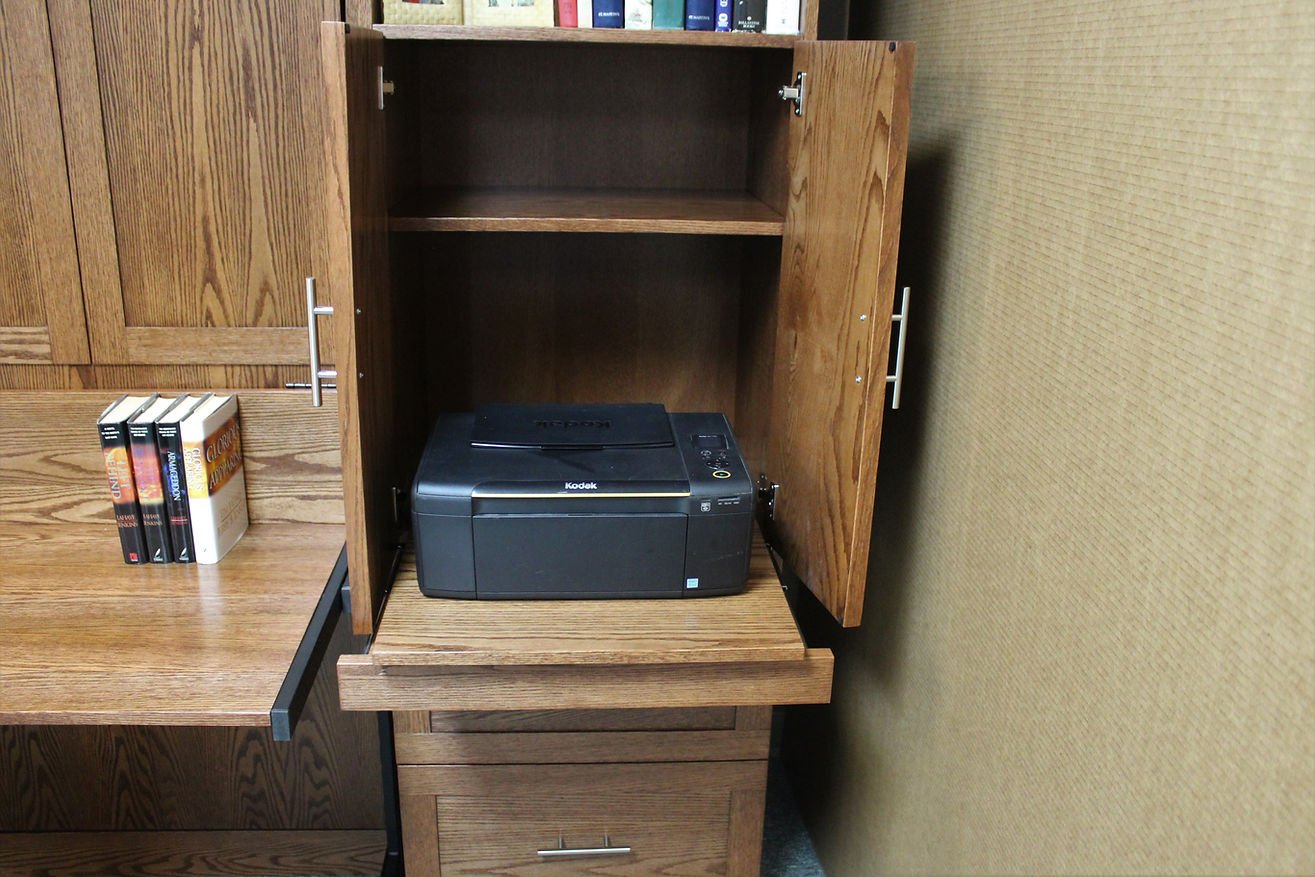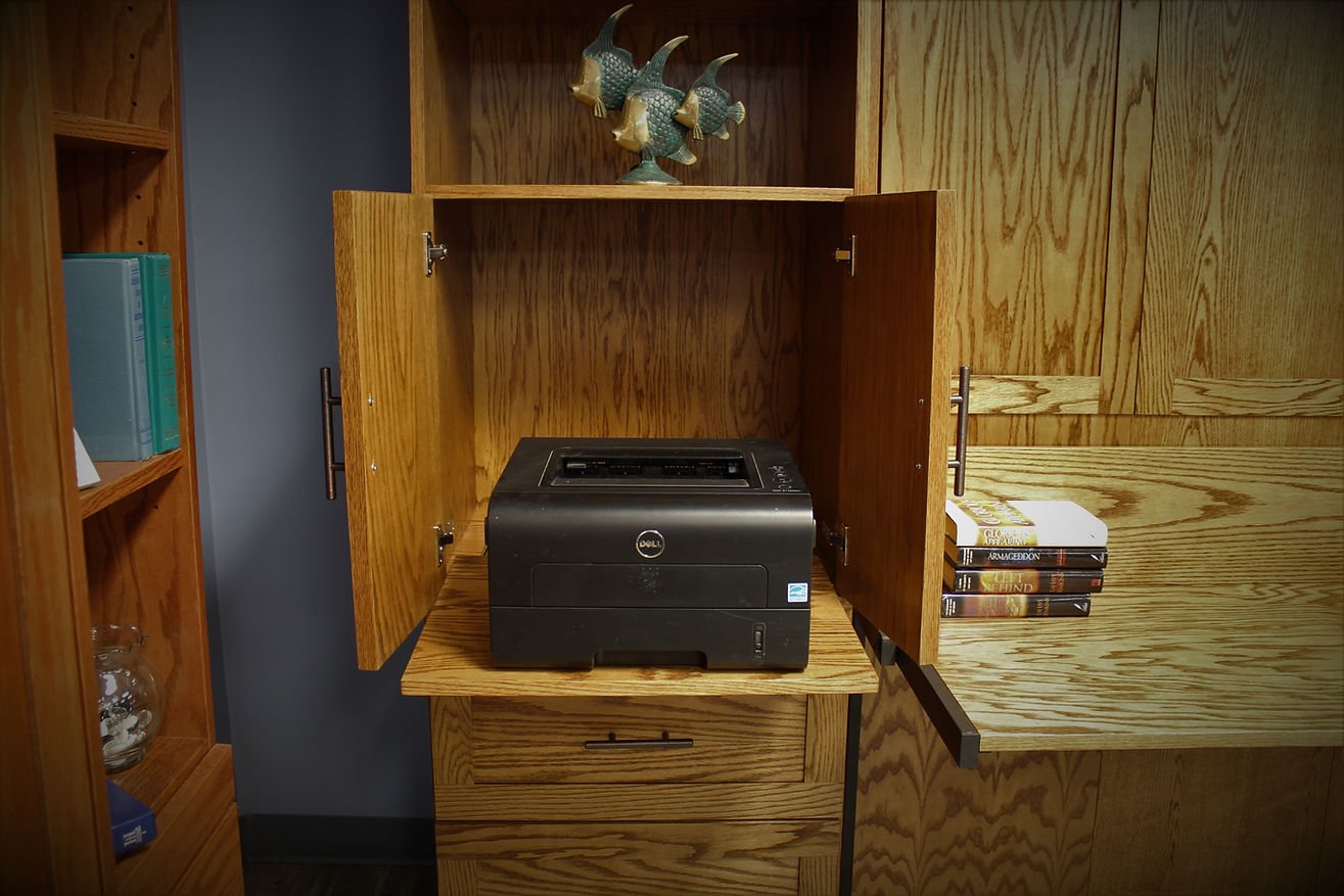 Examples are shown and priced with specific bookcases. Bookcases can be interchanged and customized to fit your need, so don’t let that limit your options.