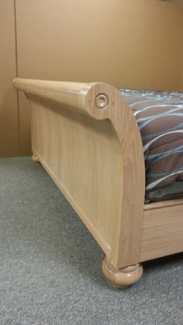 The customer has a Lexington suite in with the queen size bed. The company no longer builds this and when they wanted to upsize to a king, they couldn’t find one to match. We did change it up like not using a scroll at the top of the headboard nor the medallions. I did cut rosettes in the place of the medallions.