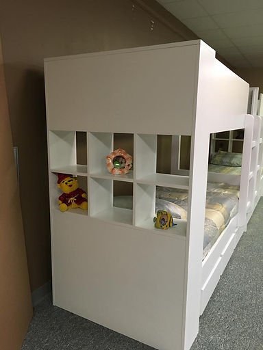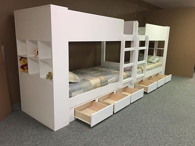 This is a new style of bunk bed. It is a twin over twin. The cubby on the end gives access to storage from both inside and outside the bed.