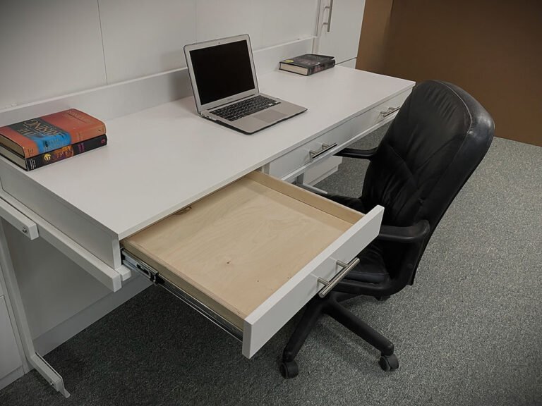 Queenan 8/12/24 Queen size Alpine Murphy Bed Showing the Desk Drawers