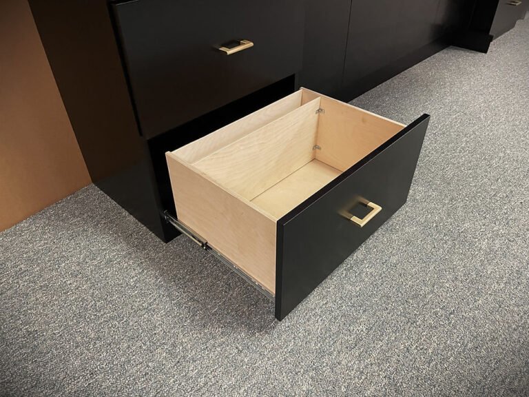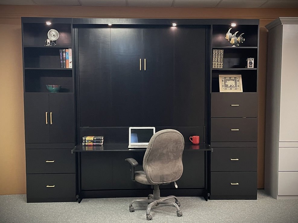 Eckholt 9/13/24 Black Lacquer Queen Alpine Murphy Bed Showing the File Drawers