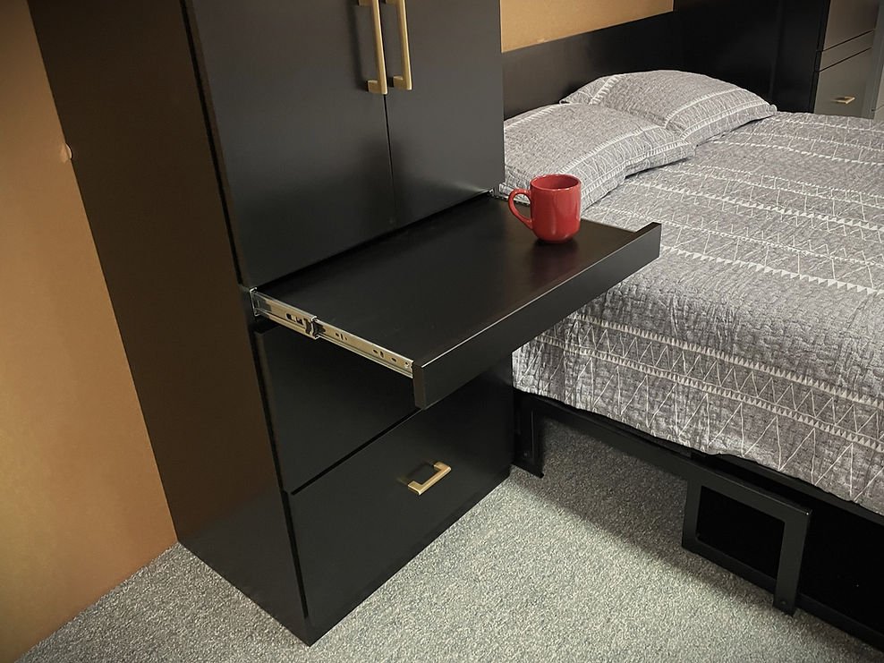 Eckholt 9/13/24 Black Lacquer Queen Alpine Murphy Bed Showing the Drink Tray