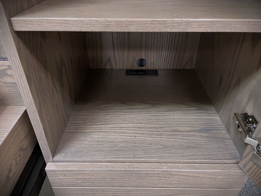Quinn 08/15/24 Classic Gray Alpine Murphy Bed Showing the Charging Station Under the Desk