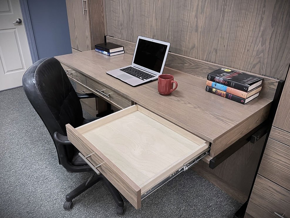 Quinn 08/15/24 Classic Gray Alpine Murphy Bed Showing the Desk Drawers