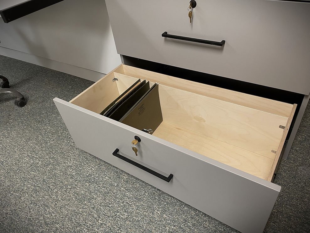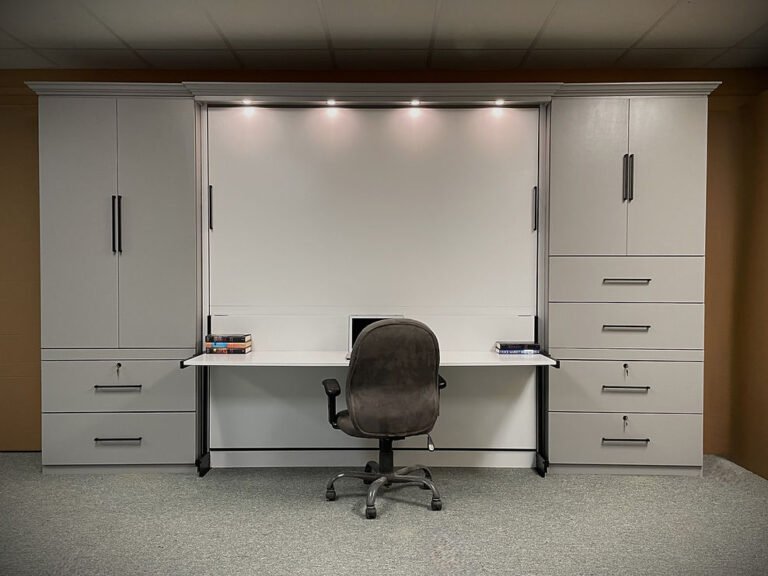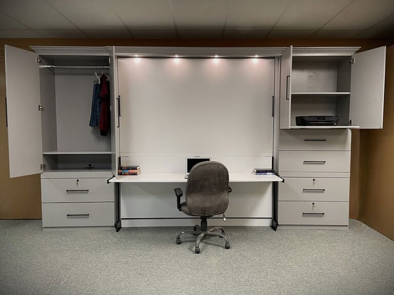 Sigety 08/21/24 Two Toned King Murphy Bed with Projector Screen Showing the File Drawers