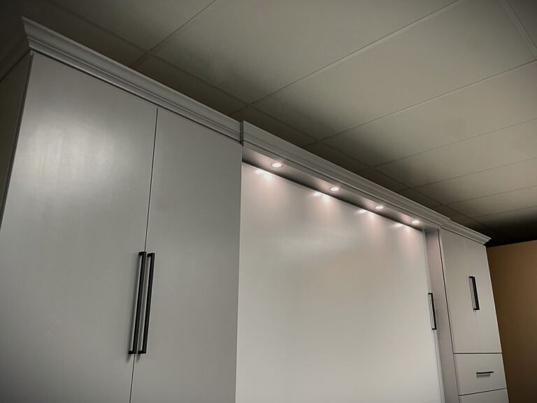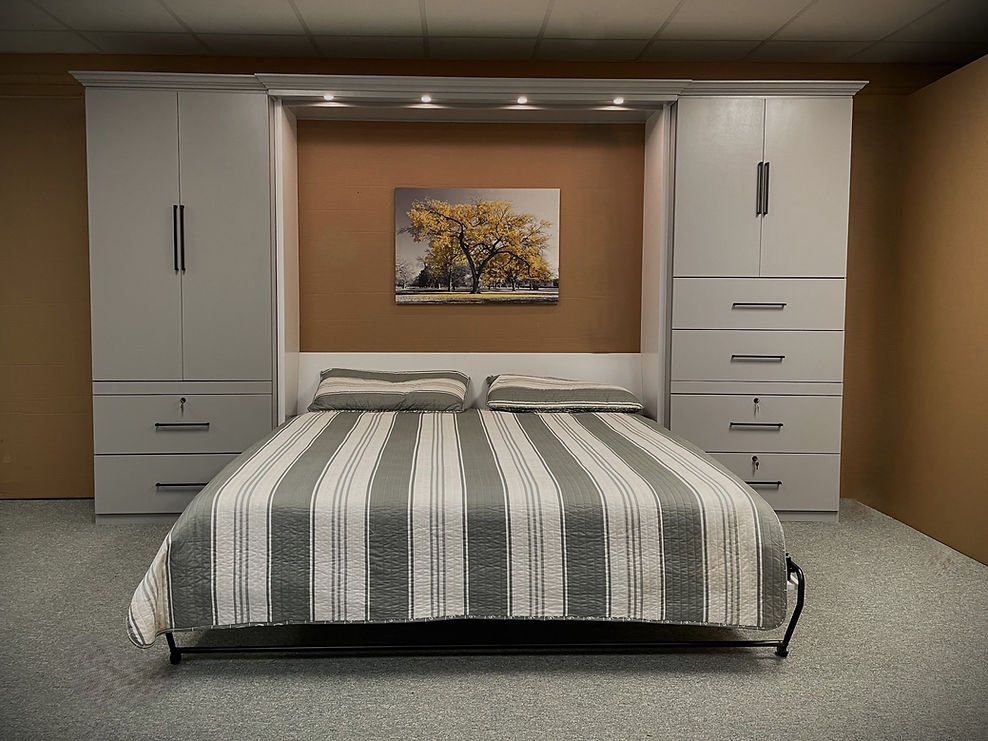 Sigety 08/21/24 Two Toned King Murphy Bed with Projector Screen Showing the LED Outset Lights