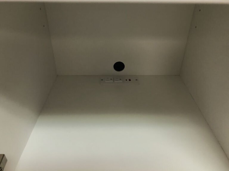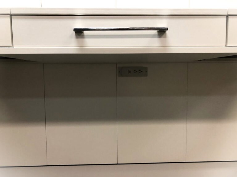 David 08/01/24 White Templeton Murphy Bed Showing the Under Desk Charging Station