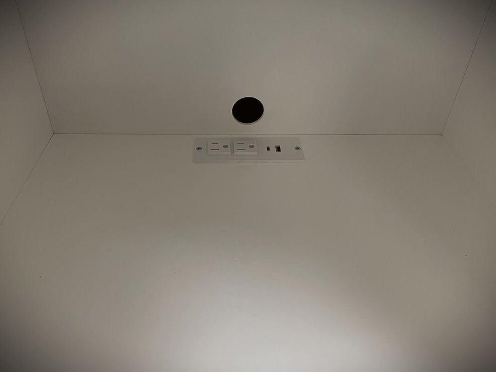Stevens 8/21/24 White Lacquer Templeton Showing the Charging Station in the Bookcases