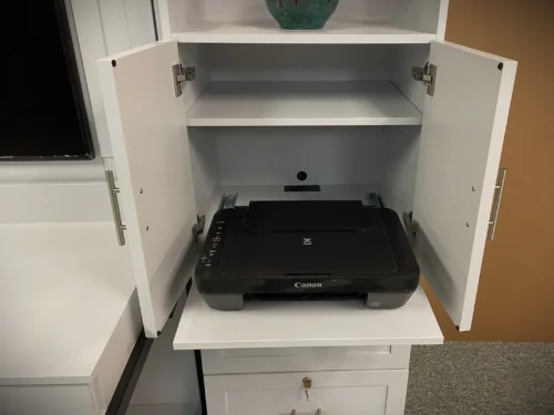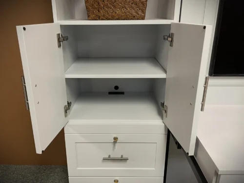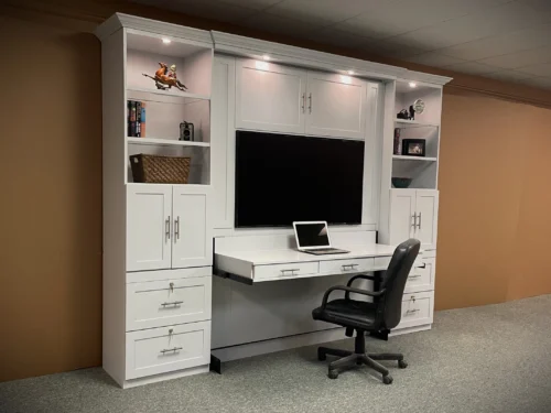 This particular unit was custom-built for a customer who wanted a space that could easily shift between a cozy guest room and a productive home office. The result? A sleek, multifunctional setup that looks more like an elegant entertainment center than a traditional bed.